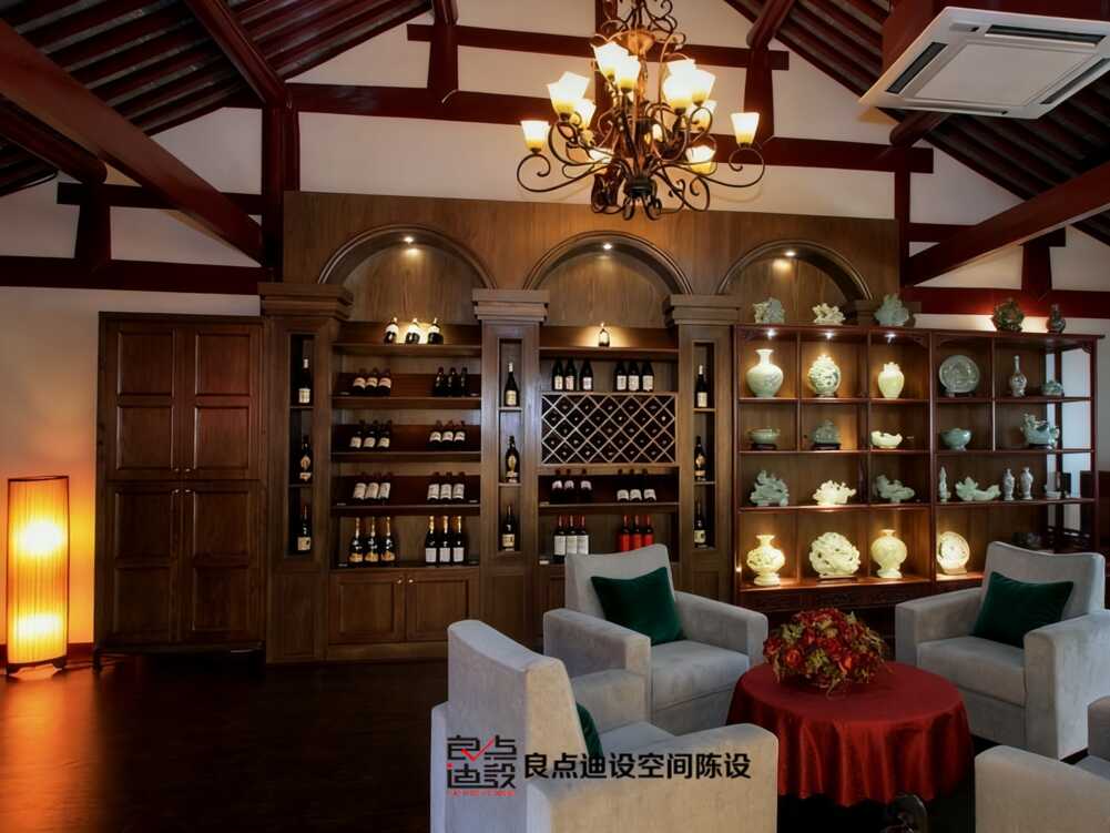 瞅瞅這張大紅沙發(fā)!絲絨質(zhì)感絕了,金色鑲邊提升精致度。對面酒柜設(shè)計太巧妙,傳統(tǒng)茶室居然和現(xiàn)代酒吧元素混搭成功。玻璃柜門透出收藏好酒,聚會氛圍直接拉滿。