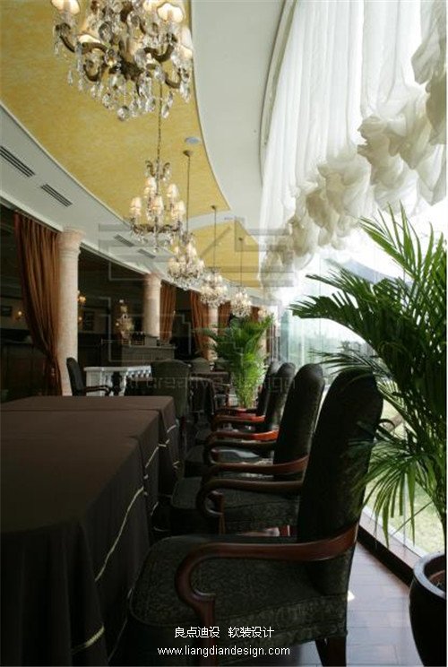 西山美廬會所,多種款式高低搭配的美式皮制釘扣沙發(fā),給人們帶來一個(gè)舒適的放松空間,大氣的宴會西餐廳與之相對,精致的水晶燈顯現(xiàn)出皇家高雅氣質(zhì),整個(gè)空間如氣勢磅礴的交響樂般讓人流連。