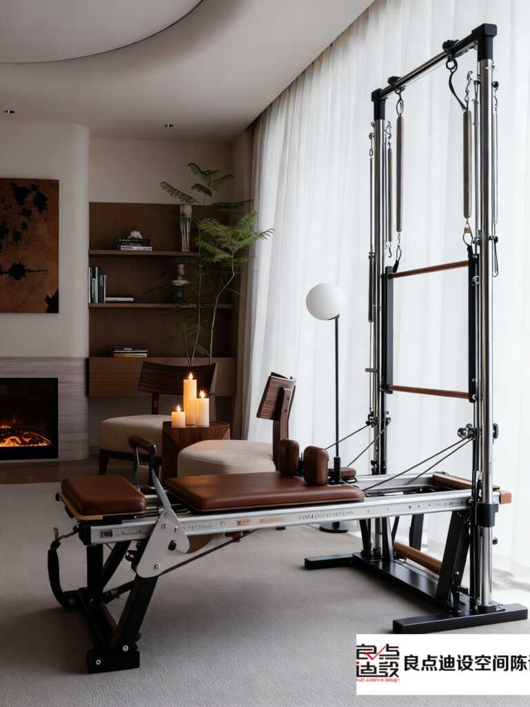 普拉提器械的選擇也很用心哦~ 淺木色的框架搭配黑色的配件,和整體的溫柔色調(diào)***融合,一點都不突兀~ 而且器械的擺放也很講究,留出了足夠的活動空間,練起來完全不會覺得擁擠~ 還有那個垂感超好的米色窗簾,陽光透過窗簾灑進來的時候,整個空間都變得暖洋洋的,練普拉提的時候心情都會變好~