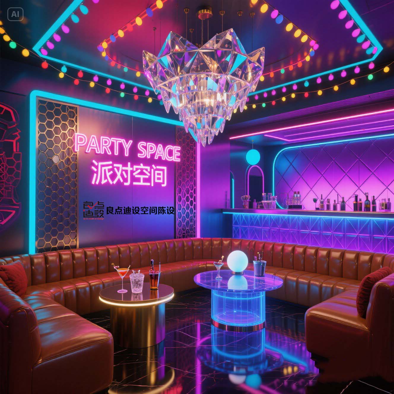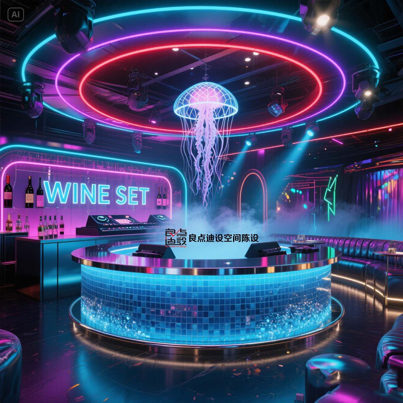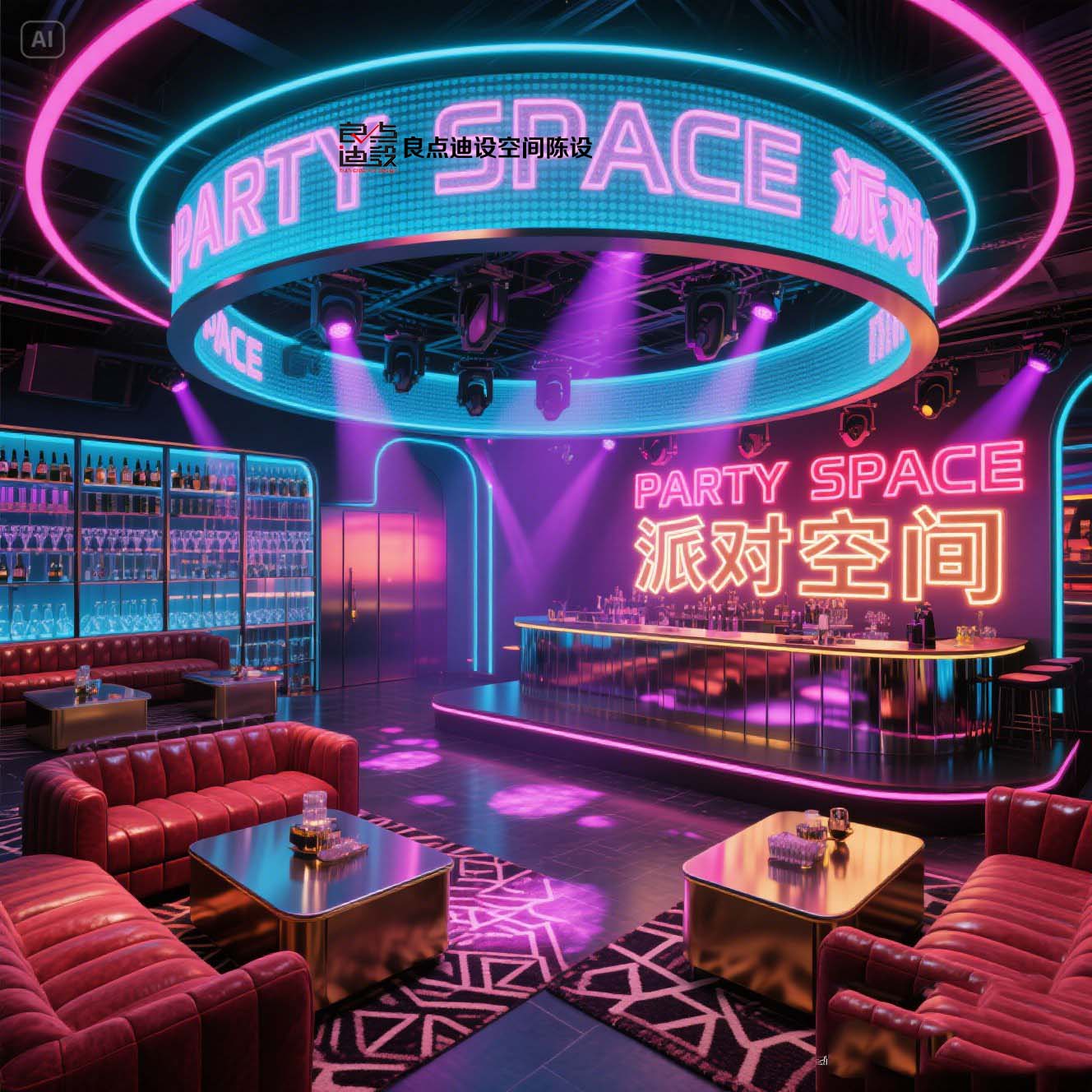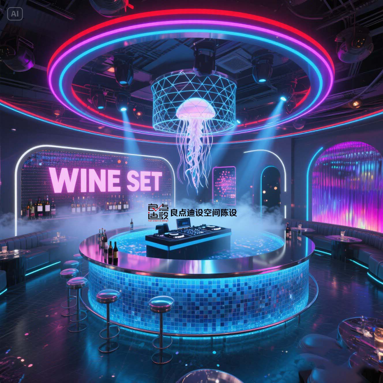 夜店酒吧裝修軟裝設(shè)計!藍色海洋遇上賽博霓虹