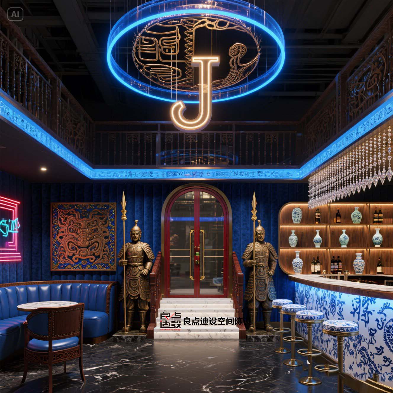 ??魔都新晉網(wǎng)紅新東方主義酒吧裝修軟裝設(shè)計出圈密碼!賽博朋克兵馬俑+青花瓷吧臺太絕了!