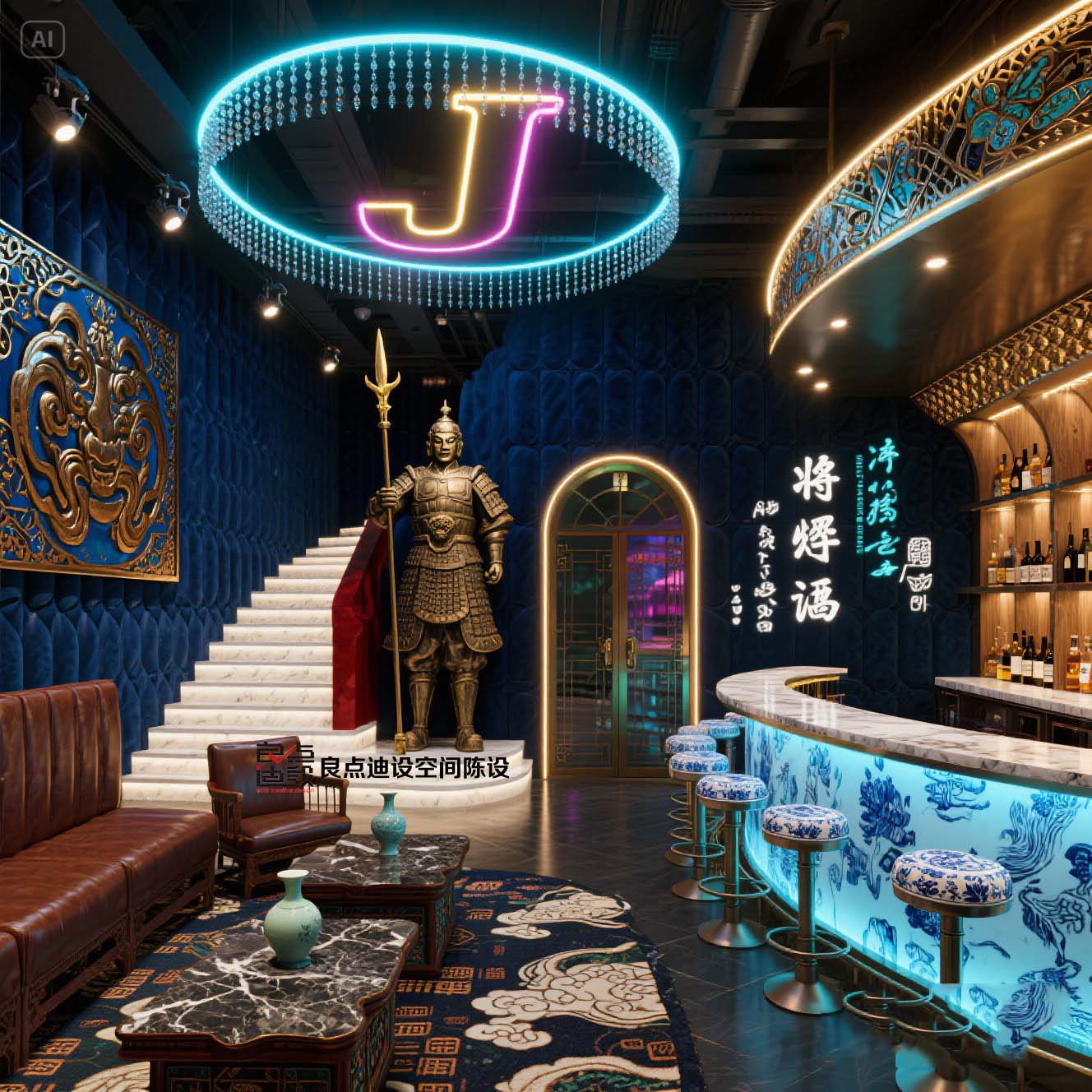 寶子們!發(fā)現(xiàn)一家把賽博朋克和中式美學(xué)玩出花的寶藏酒吧!進(jìn)門就被3米高的霓虹"J"字燈牌暴擊??藍(lán)粉光暈+水晶珠簾 隨便拍都是電影感拉滿!