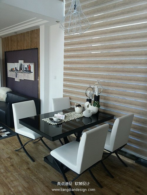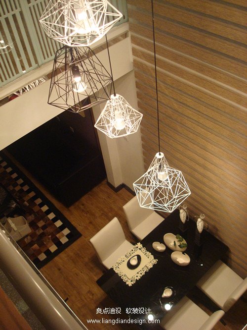 香城壹號(hào)LOFT本身是一個(gè)挑高空間,樓上樓下雙層生活空間,大的落地窗納入明媚陽(yáng)光,樓下起居室與餐廳連接一體,舒適自然,給居住者提供方便舒適的使用環(huán)境,在這樣的空間中我們運(yùn)用大膽時(shí)尚的設(shè)計(jì)風(fēng)格,餐廳區(qū)域是挑高的空間,窗簾形式也采用簡(jiǎn)潔的彩虹卷簾百葉的形式。抽象化的吊燈在空間給人帶來(lái)隨意自然的氛圍?,F(xiàn)代感皮面沙發(fā)和漸變拼花皮地毯都給人帶來(lái)時(shí)尚的氣息,二樓樓梯間的照片墻有歡迎客人與展示主人愛(ài)好與生活方式的作用,一個(gè)小桌配一個(gè)復(fù)古的皮沙發(fā),不論是暖暖的下午還是深夜都是一個(gè)品茶看書(shū)的好地方,貴族藍(lán)的床品和化妝臺(tái)搭配煙灰色紗幔,為臥室營(yíng)造出典雅浪漫的氣息,LOFT風(fēng)格創(chuàng)意裝飾就這樣被打造出來(lái)。