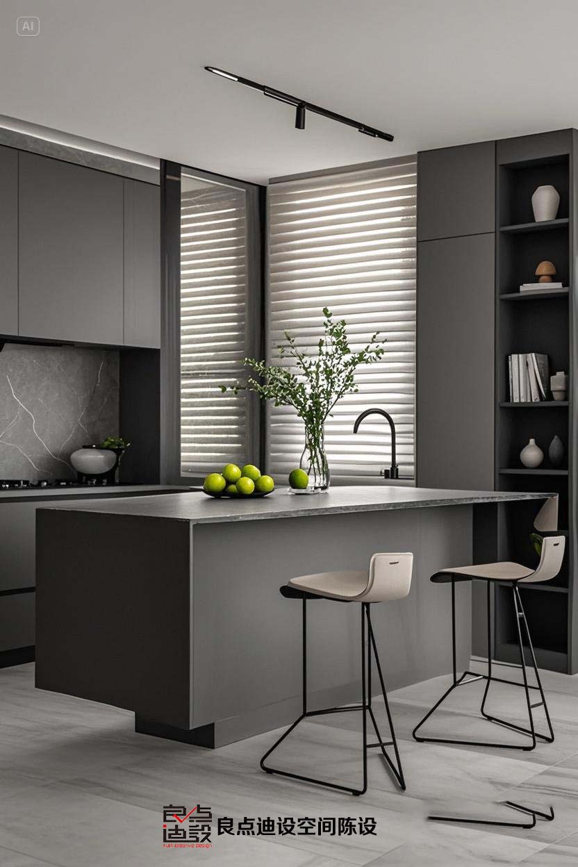 看看這廚房的整體色調(diào),灰色系那叫一個拿捏得死死的,高級冷淡風直接拉滿。這種色調(diào)不僅耐臟,關鍵還巨顯檔次,簡直是顏控和懶人的雙重救星。