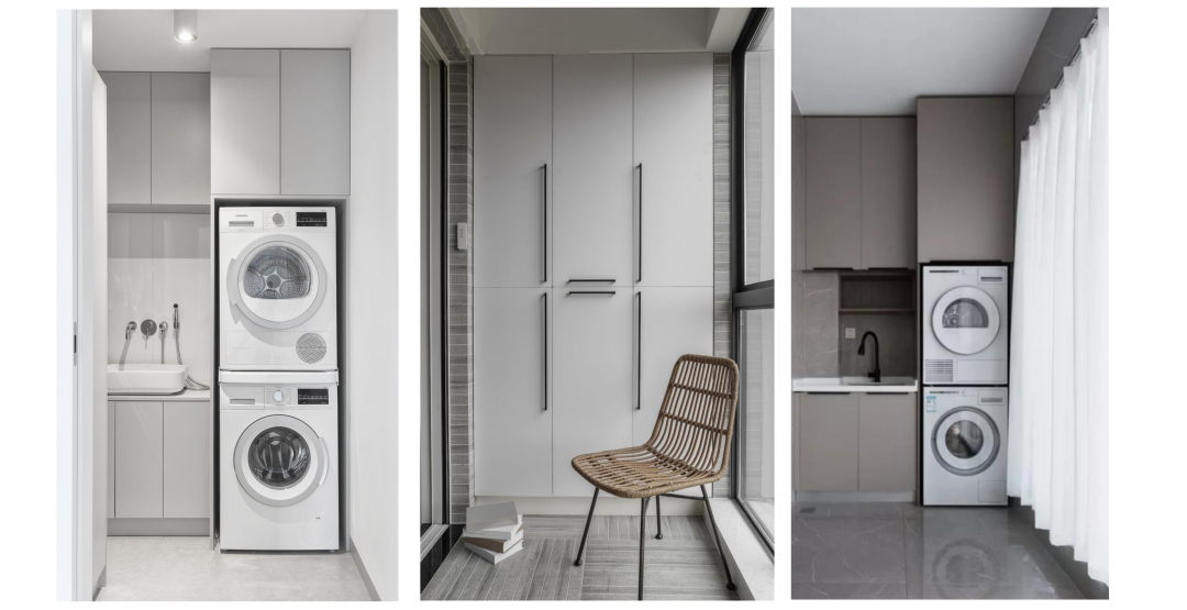 陽臺很重要的一個(gè)功能就是洗衣晾曬,因此洗衣機(jī),烘干機(jī),洗衣臺面都是必不可少,生活比較小資的業(yè)主,可以在陽臺定做一個(gè)卡座或者放幾把椅子還有一個(gè)小圓桌,趁著周末約幾個(gè)好友閑坐喝茶聊天,也是非常愜意的。