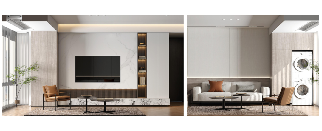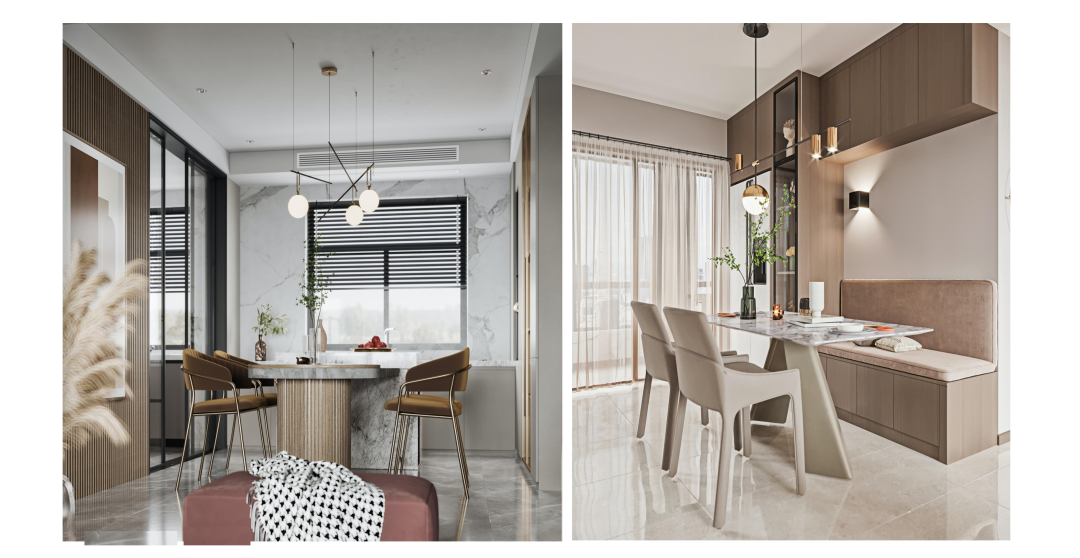 陽臺與客廳之間的墻體一般較厚,可依托其厚度在埡口設(shè)計(jì)一個(gè)小吧臺,既能放置物品也可當(dāng)做餐桌,實(shí)用又有情調(diào)。讓客廳和陽臺空間相互延伸融為一體,還能大大優(yōu)化室內(nèi)的采光和通風(fēng),讓其更好地成為一體,達(dá)到擴(kuò)容的作用。