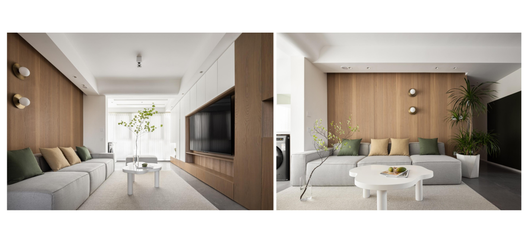 原始空間沒有做改動(dòng),入戶增加鞋帽收納柜,客廳家人休閑娛樂和會(huì)客的區(qū)域,整面電視柜滿足日常收納及書籍整理;餐廳區(qū)域滿足日常一家人的進(jìn)餐;陽臺區(qū)域作為洗衣晾曬與休閑一體的生活休閑空間;從西向東的次臥依次作為長輩房、兒童房使用;主臥空間作為業(yè)主的睡眠區(qū),同時(shí)滿足衣物收納;北次臥作為獨(dú)立書房使用。
