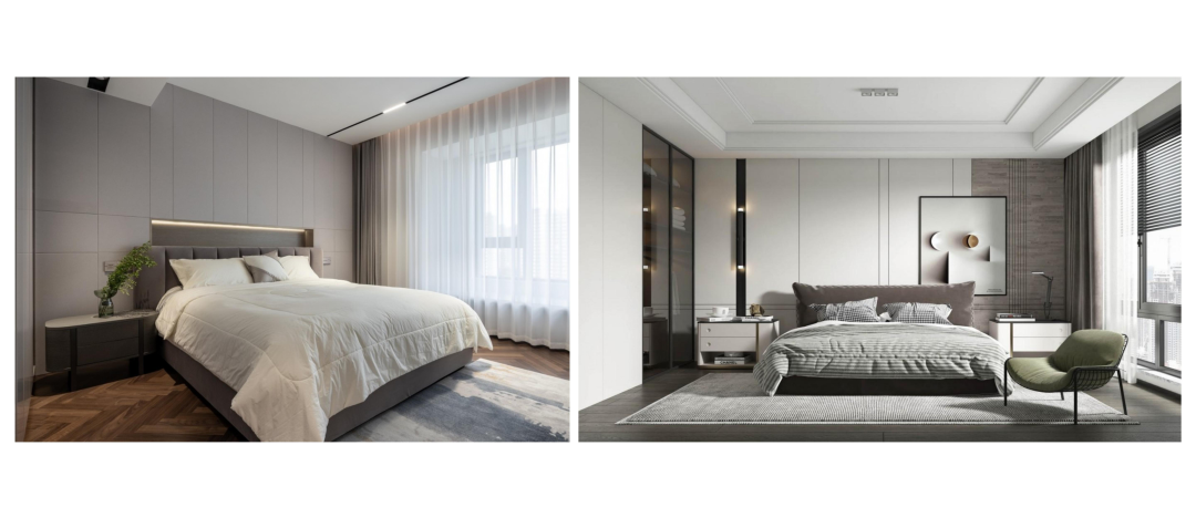 與***稿方案有所不同的是,將客廳陽臺空間打通,整體空間更加開闊;餐廳增加卡座,卡座一般靠墻或在角落,其占用空間比椅子少,必要時(shí)可以坐更多的人,還能增加收納空間。北次臥作為客臥,設(shè)計(jì)為榻榻米+衣柜+書桌結(jié)合的形式。