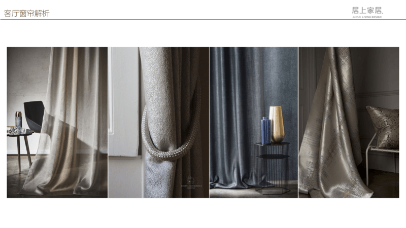 客廳窗簾的顏色***好從沙發(fā)花紋中選取,淺色調(diào)、透光性強(qiáng)的薄窗簾布料為好,能夠營造出一種莊重簡潔、大方明亮的視覺效果。