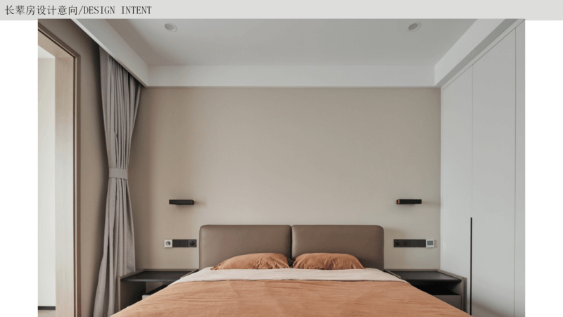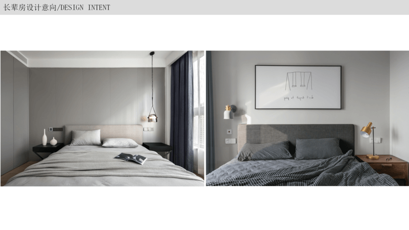長輩房 以簡約大氣為主,隨著年紀(jì)的增長,生活需求是方便安全為主,以簡單的裝飾畫為背景或者做簡單軟包,整個(gè)空間顯得溫馨一些,放置床頭柜燈方便起夜,按需要增加收納即可。