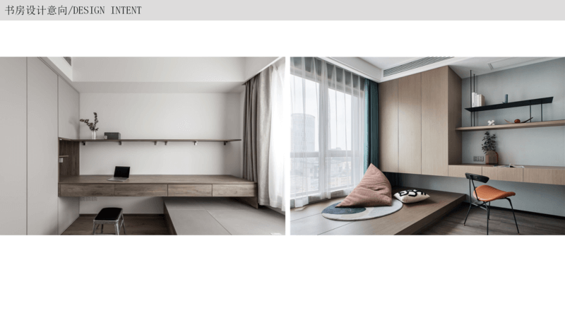 可以做嵌入式的收納柜設(shè)計(jì),不僅滿足日常書籍的擺放,開放格和閉合式相結(jié)合,既增加了收納也能擺放一些裝飾物。