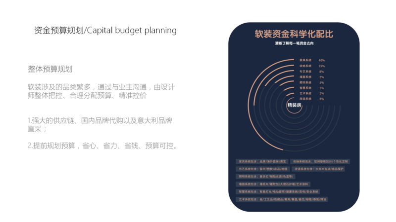 上圖是大概軟裝設(shè)計(jì)所包括的類目和價(jià)值占比,現(xiàn)在精裝房越來越多,而軟裝設(shè)計(jì)師就是是從整體上綜合策劃裝飾裝修設(shè)計(jì)方案,體現(xiàn)出居住者的個(gè)性品位。