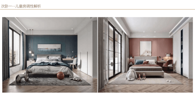 主臥做套房設(shè)計,作為業(yè)主的私人活動空間,起居打扮在這里都能完成。另外三間臥室作為兒童房、長輩房和客房,房間以簡約為主,按照房間定性進(jìn)行規(guī)劃。
