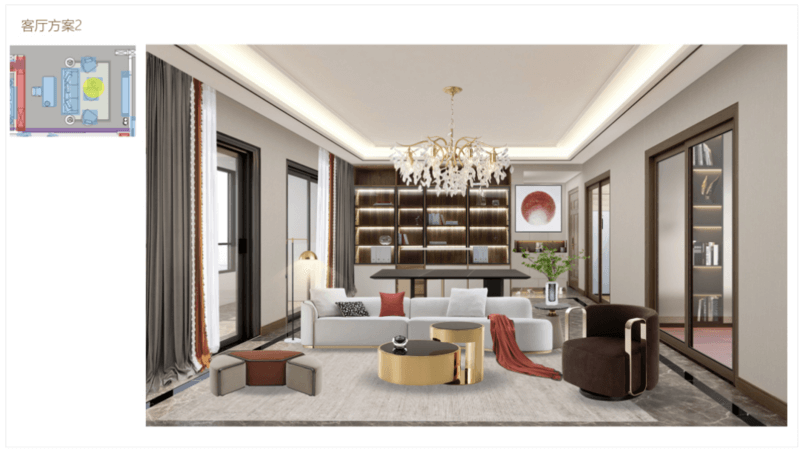 門廳入戶增加玄關(guān)儲物柜,解決換鞋、儲物、掛衣的問題??蛷d增加功能性的選擇,以沙發(fā)為隔斷,增加開放式書房,選擇整墻的收納架,再配上一張自帶高級感的書桌,輕松營造出有品位的學(xué)習(xí)工作環(huán)境。也可以當(dāng)作茶室來使用,隨時改變空間性質(zhì)。