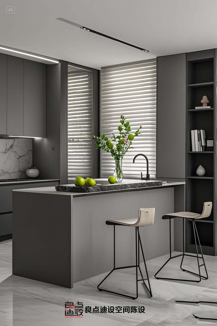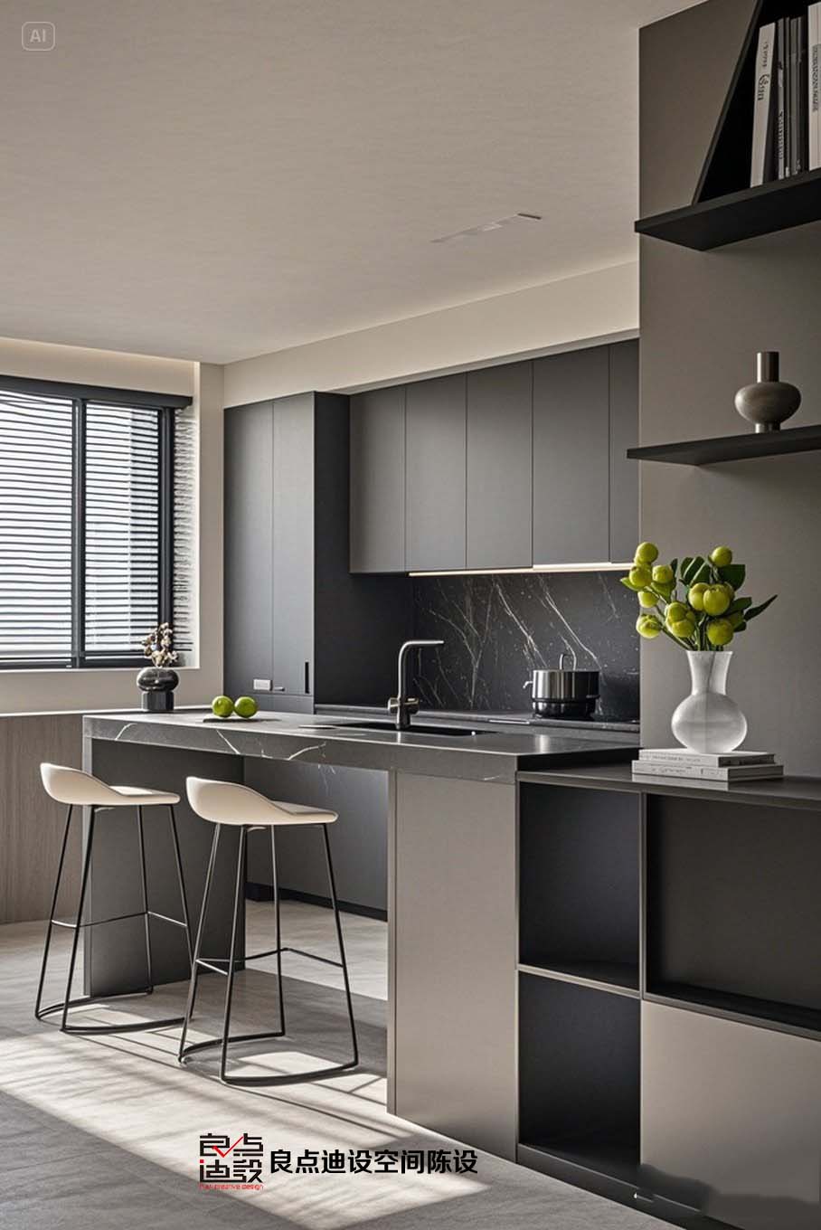灰調(diào)簡約廚房封神!60㎡裝出100㎡高級感,每一寸都是心機!