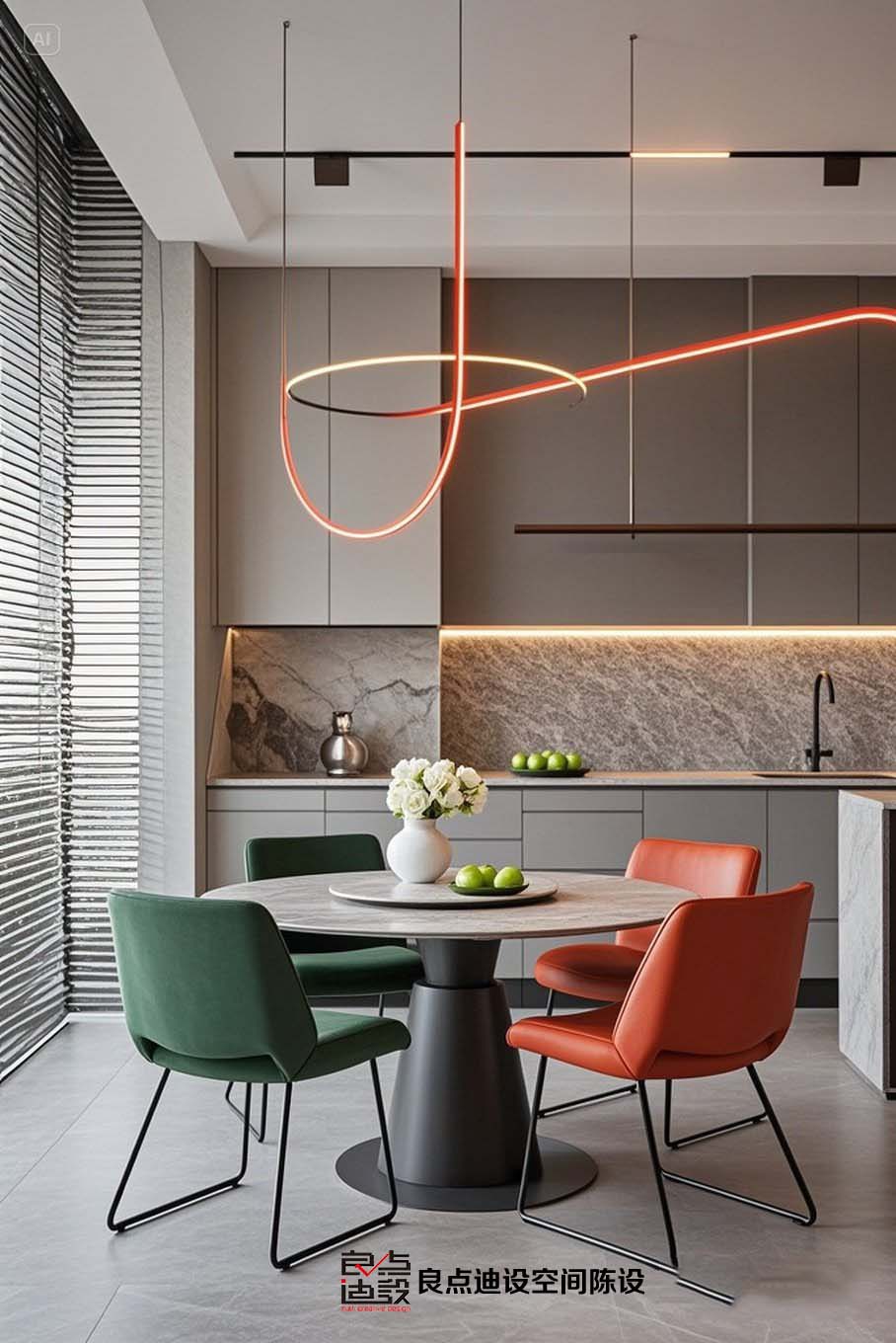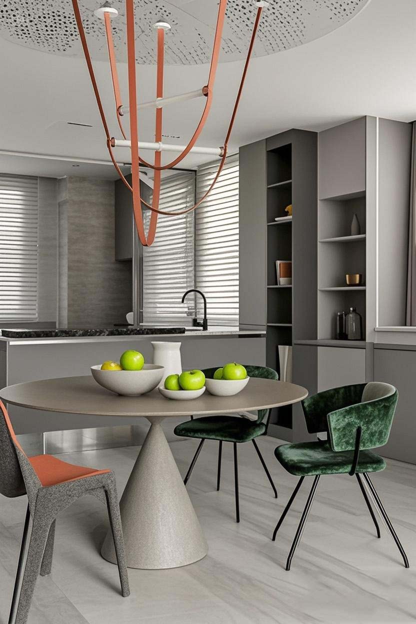 這套軟裝設(shè)計就組合拳誰看誰迷糊!灰橙綠配絕了,小廚房秒變雜志封面!??